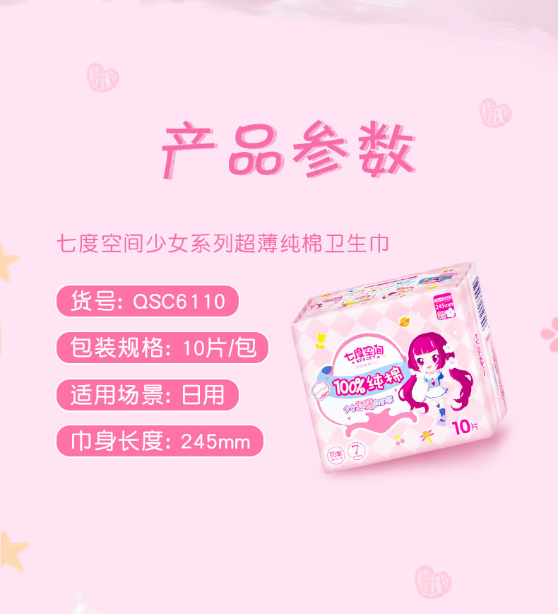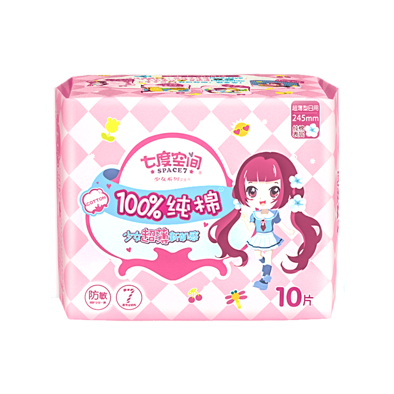 七度空间(SPACE7) 少女超薄纯棉 日用卫生巾245mm*10片(新包装)